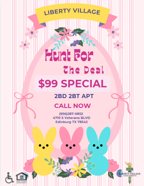 Liberty Village is our newest apartment community in Edinburg, Texas. We feature extraordinary living at an affordable price. You can enjoy the convenience of being close to everything with easy access to shopping, restaurants, entertainment, and schools. Easy access to State Hwy 69C makes your stressful commute a thing of the past. If being outdoors is more your style, there are numerous public parks nearby.